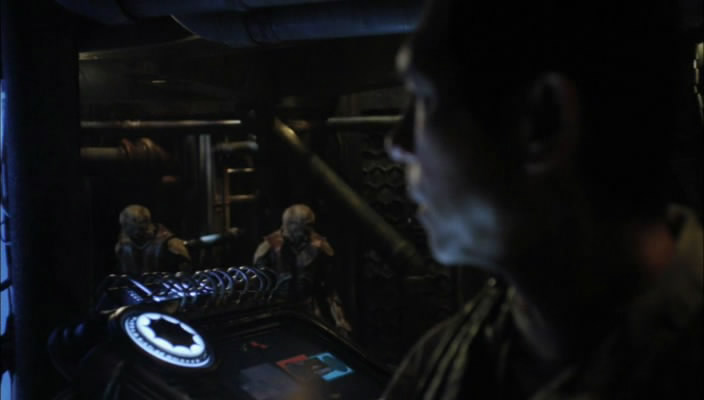 На пристыковавшийся корабль Янг отправил Скотта, Грира, Волкера и Броди. Раш тоже рвался его исследовать, но полковник приказал заниматься расшифровкой данных. Пока Мэтт и Рональд осматривались, Дейл и Адам приступили к изучению компьютерных систем корабля. И стоило только Броди ненадолго отлучиться в другой зал, за спиной Волкера появился инопланетянин. Но Дейл даже испугаться толком не успел, потому что серенький "человечек" вдруг упал без сознания.